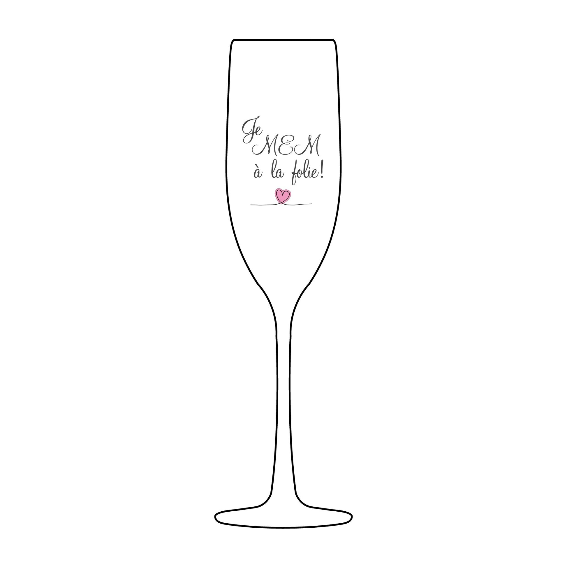 Je MEM à la Folie by Marie-Ève Mongrain Champagne Flute | Engraved Glass | Wedding Toast Glass | Bridal Shower Gift | Anniversary Celebration