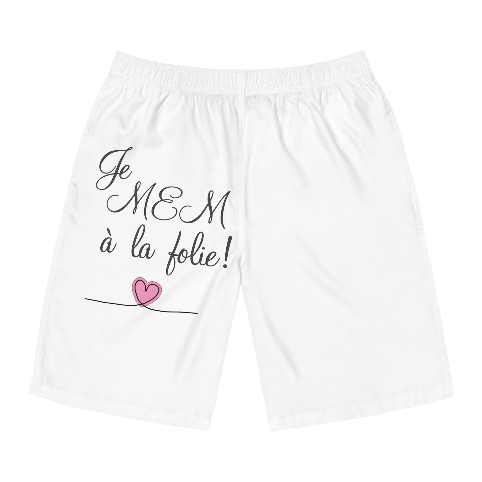 Je MEM à la Folie par Marie-Ève Mongrain, Men's Board Shorts with Inspirational Design - Perfect for Beach Days, Summer Fun, Pool Parties, Gifts for Him, Vacation Ready